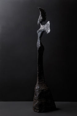 На створення цієї роботи мене надихнула статуя Ніки Самофракийской, що є спадщиною античного мистецтва. Вона була висічена з каменю на честь богині перемоги Ніки і символізувала собою нестримний рух вперед. Мене привабило поєднання жіночності, легкості і одночасно відчуття впевненості, монументалізму в її фігурі.